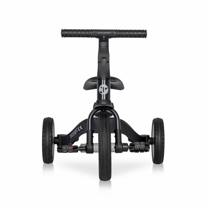 - pentru copii cu varsta cuprinsa intre 3 si 4 ani. Aceasta versiune este fara pedale, iar rotile din spate sunt conectate, formand o roata din spate stabila.