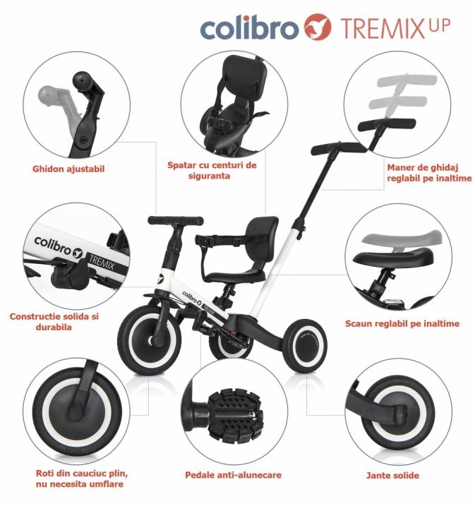 - Apasand 3 butoane puteti converti o tricicleta intr-o bicicleta in cateva secunde. Atasand sau scotand pedalele, puteti regla perfect TREMIX UP la varsta si cresterea copilului dumneavoastra
