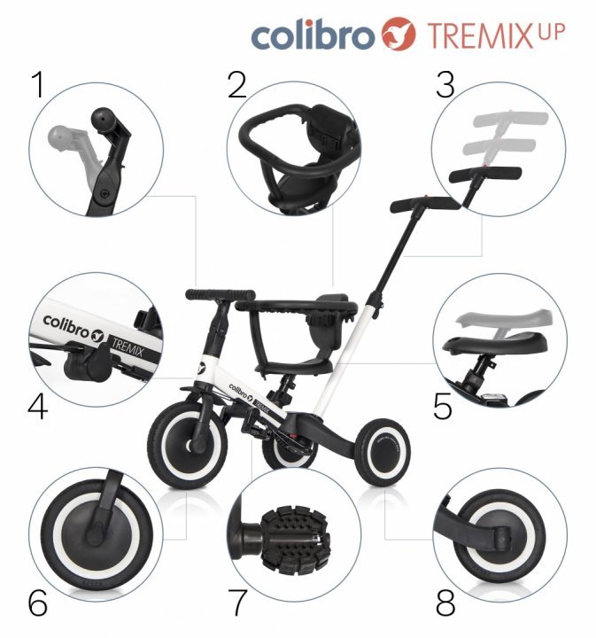 - Apasand 3 butoane puteti converti o tricicleta intr-o bicicleta in cateva secunde. Atasand sau scotand pedalele, puteti regla perfect TREMIX UP la varsta si cresterea copilului dumneavoastra