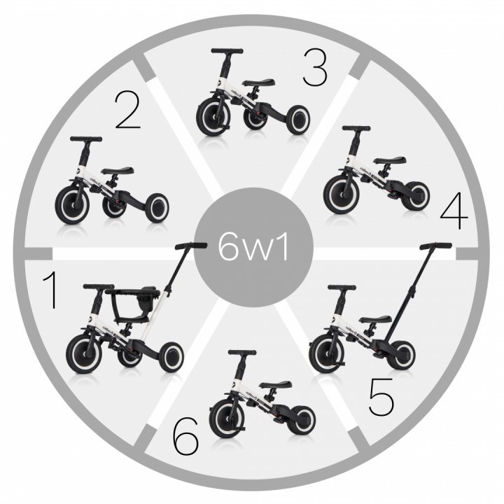 * TREMIX UP este o tricicleta 5 in 1 care poate fi utilizata in 5 versiuni diferite, in functie de varsta copilului: