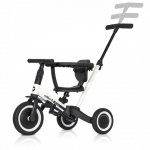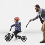 1. TRICICLETA CU MANER - versiunea pentru varsta cea mai frageda, intre 1 an si 2 ani. In acest caz parintele poate impinge tricicleta ca pe un carucior cu ajutorului manerului reglabil in trei trepte de inaltime, copilul poate sta in scaunul cu spatar si asigurat in centurile de siguranta ale tricicletei. De asemenea, in aceasta versiune pedalele se monteaza sub cadru in locul special dedicat acestui lucru, caz in care pedalele joaca rolul unui suport de picioruse.