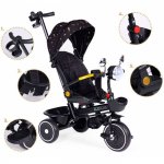 Tricicleta pentru copii Ecotoys Negru multifunctionala, scaun rotativ 360, roti din spuma EVA, suport pliabil pentru picioare, bariera de siguranta, maner pentru controlul directiei