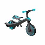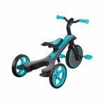 Tricicleta pentru copii Globber Explorer 4 in 1 Turquoise cu control parental, de la 10 luni, parasolar anti UV ajustabil, suport de picioare detasabil, scaun ajustabil pe inaltime