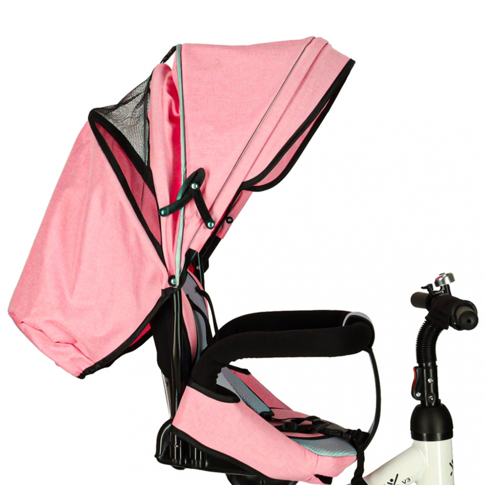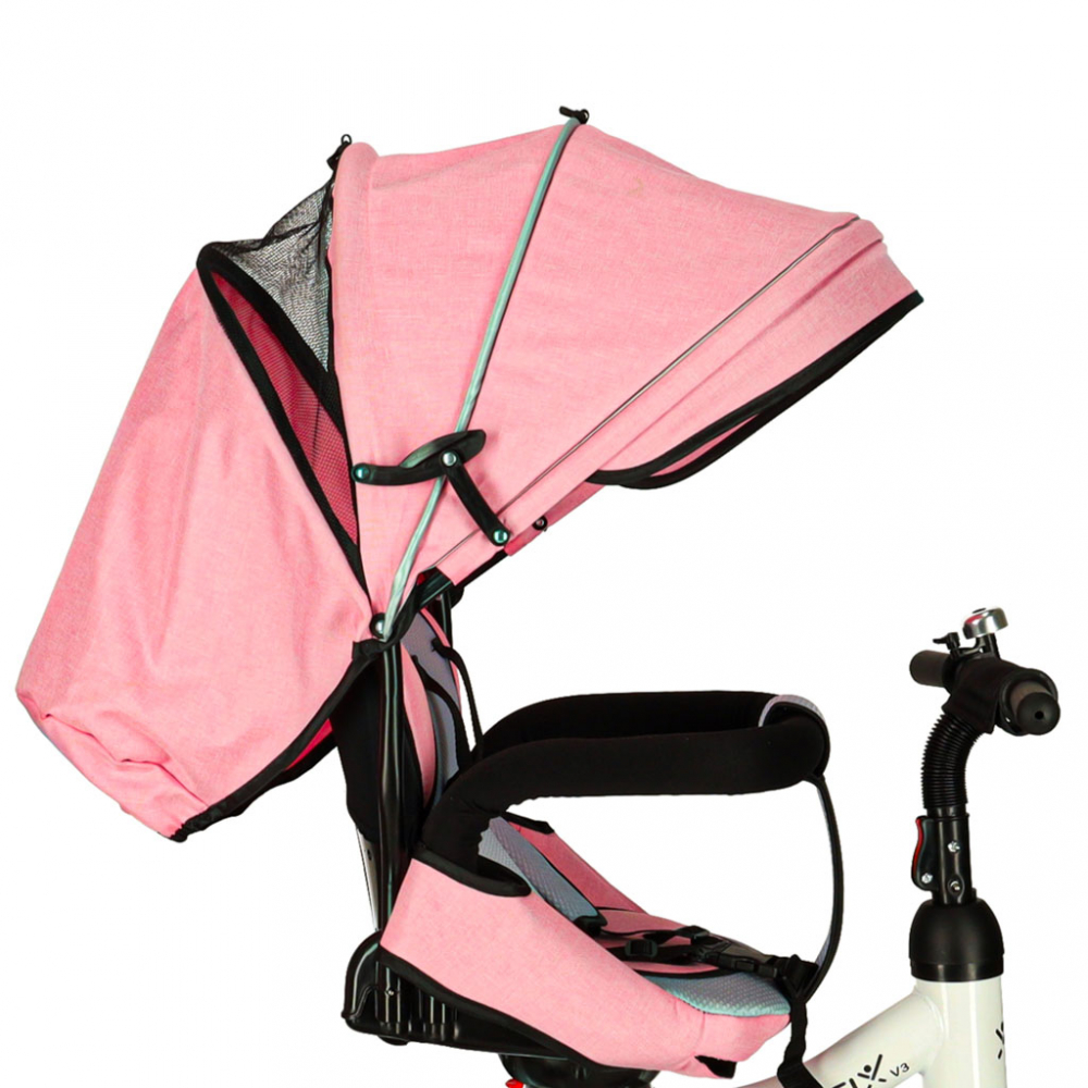 Tricicleta pentru copii Ikonka Trike Fix V3 Pink, cu scaun rotativ 360 si control parental, pozitie somn, suport picioare, amortizor spate, 2 seturi suport picioruse, Roti cauciuc EVA