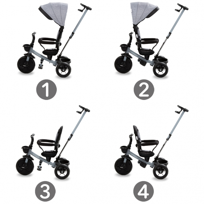Tricicleta pentru copii Kidwell Axel Gri cu sezut rotativ, roti din spuma EVA, suport pentru picioare, control parental, suport pentru pahar, centura de siguranta, greutate admisa 25 kg