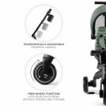 Tricicleta pentru copii Kinderkraft Jazz 2 Green, pliabila, scaun rotativ, spatar reglabil, maner ajustabil