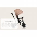 Tricicleta pentru copii Lionelo Tris Plus Bej Ultrapliabila, Multifunctionala, Pana la 25 kg, Inclinare spatar in fata si in spate, Suport picioare, Control al directiei, Scaun reversibil, Rotire 360 grade, Conform cu EN71