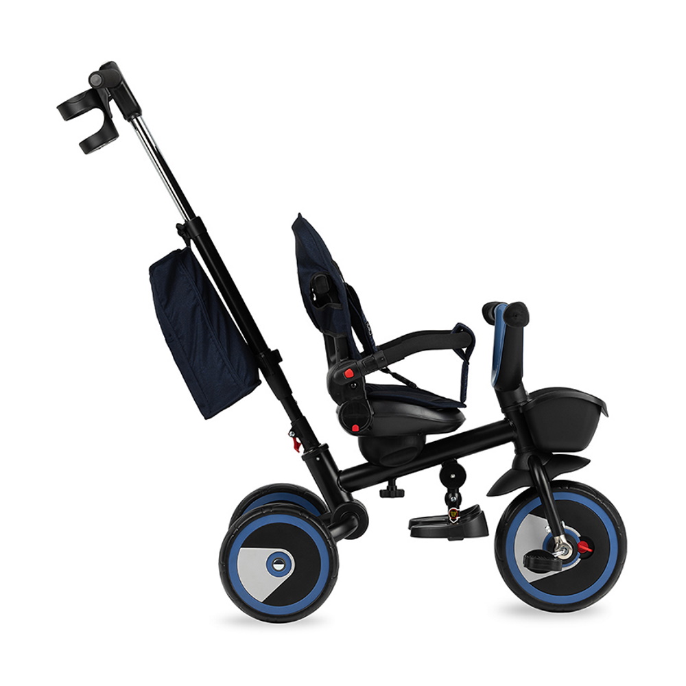Tricicleta 5 in 1, MoMi INVIDIA, Scaun rotativ 360°, Spatar reglabil, Maner telescopic, Centura in 5 puncte, Pliabila, Suport pahare, Tapiterie usor de curatat