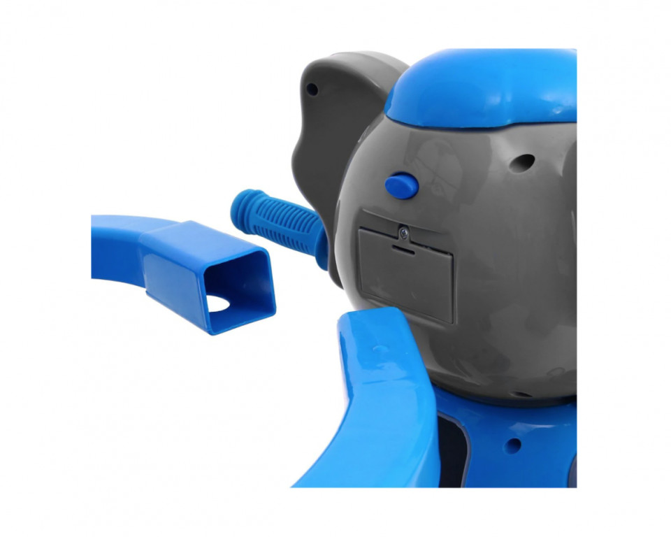 Tricicleta pentru copii MRamiz Elefant Albastru cu parasolar, cos pentru jucarii, suport picioare, roti din spuma, sunete, maner parinte