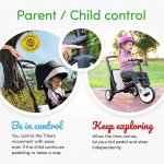 | Caracteristici speciale | Mecanism de pedalare libera Frana Copertina Spatar reglabil Bara protectie detasabila Touch Steering Suspensii Control al directiei Maner reglabil Suport picioare Ultrapliabila |