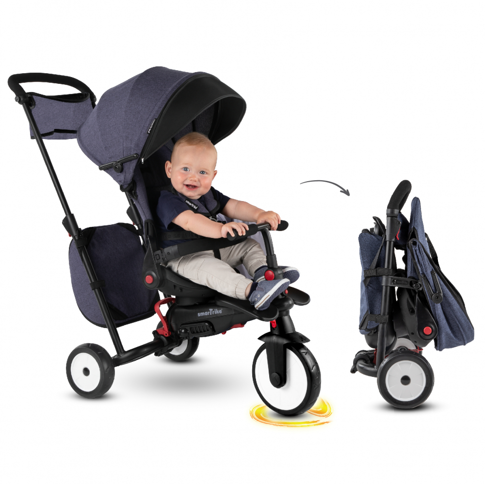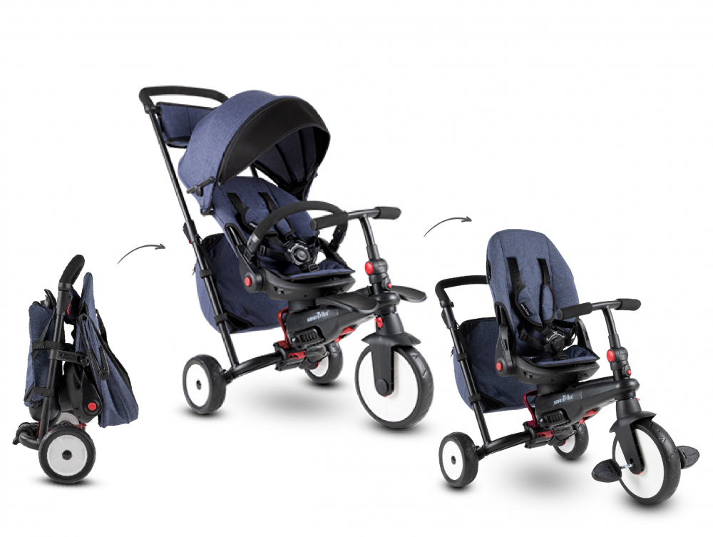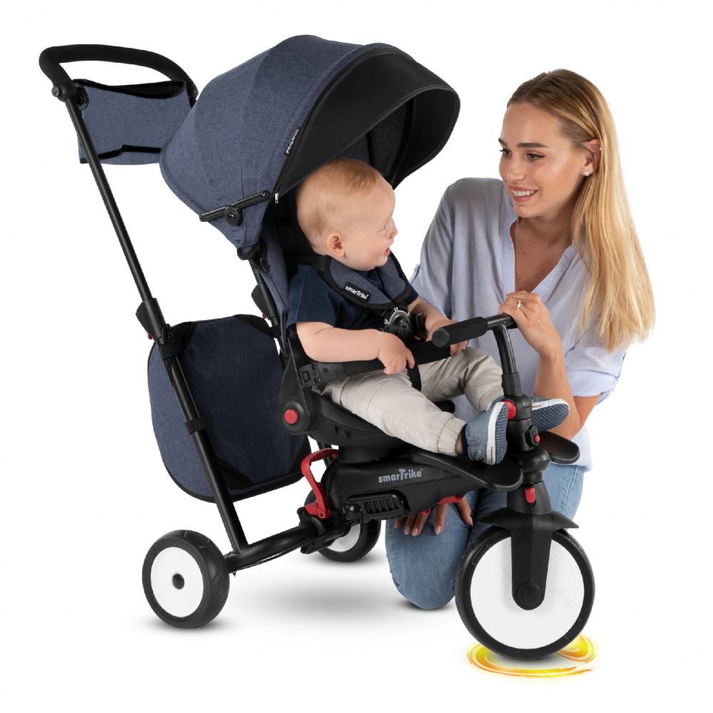 Tricicleta pentru copii Smart Trike STR7 Jeans 7 in 1 ultrapliabila, spatar reglabil, sistem patentat Touch Steering, roti din cauciuc cu functie de absorbire a socurilor, varsta 6 luni+