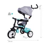 Tricicleta pentru copii Sun Baby 017 Fresh Turquoise Grey cu sezut reversibil 360, control al directiei, roti din spuma eva, suport pentru picioare pliabil