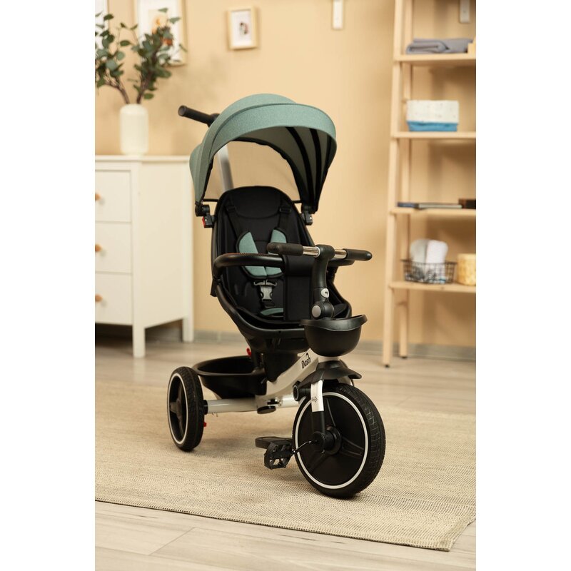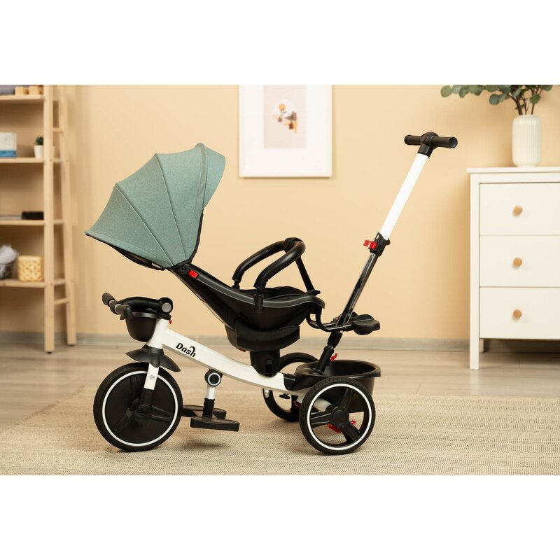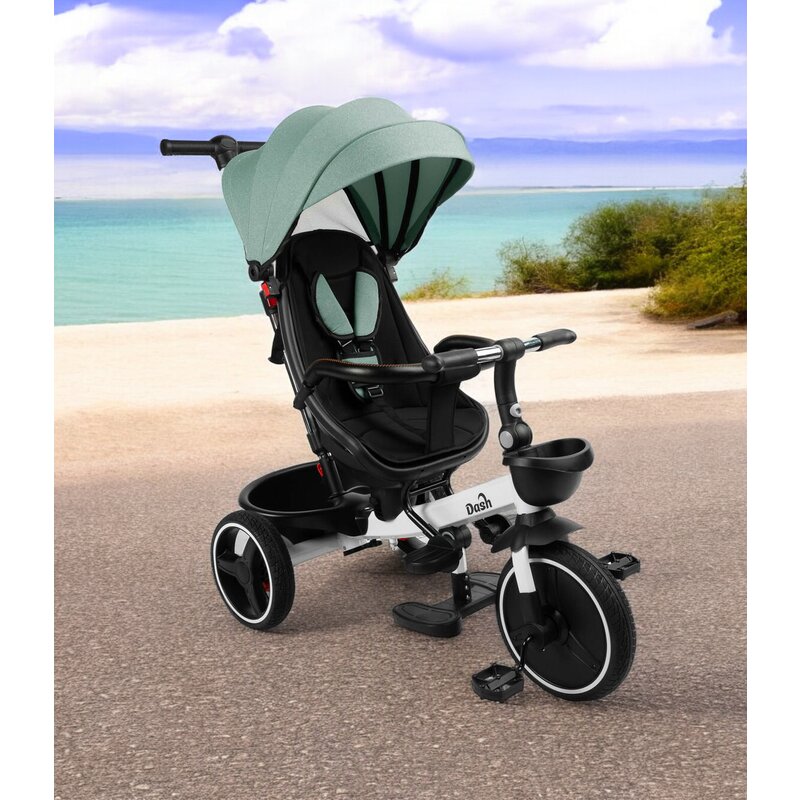 Tricicleta pentru copii Toyz Dash Green cu maner parental, scaun reversibil si spatar reglabil cu pozitie de somn, suport picioare, frana si copertina,pana la 25 kg