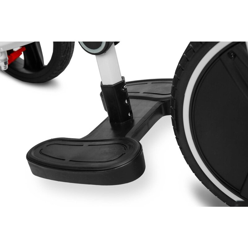 De asemenea, este dotata cu doua suporturi pentru picioare, ajustabile astfel incat sa asigure confortul copilului la orice varsta. Rotile spate sunt dotate cu frane.
