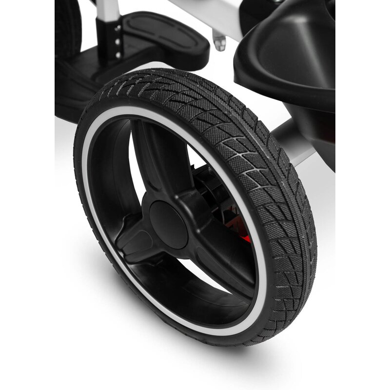 Poate fi utilizata atat ca tricicleta cu care copilul se poate deplasa singur, cat si ca un carucior sport cu capotina, in care copilul poate fi transportat atat cu fata, cat si cu spatele spre parinte.