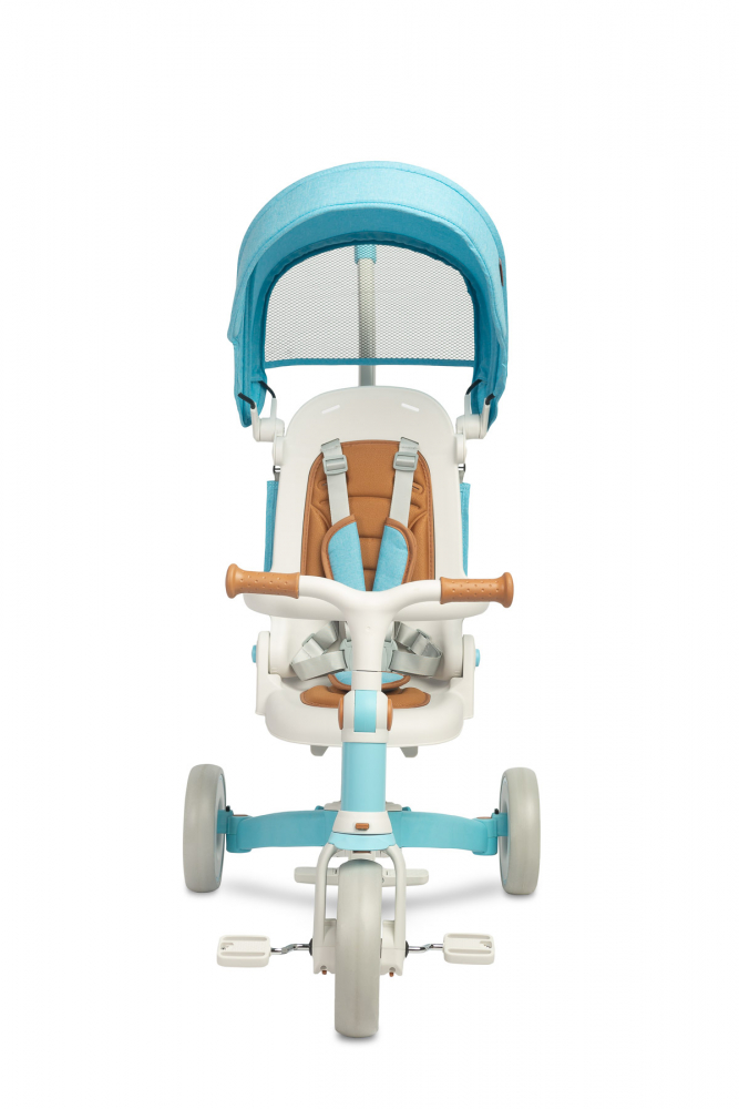 Tricicleta pentru copii Toyz Faro Blue multifunctionala, ultrapliabila,spatar reglabil,scaun moale rotativ,maner parinte detasabil si reglabil in 4 pozitii,centuri de siguranta,roti EVA,pedale detasabile,gentuta inclusa