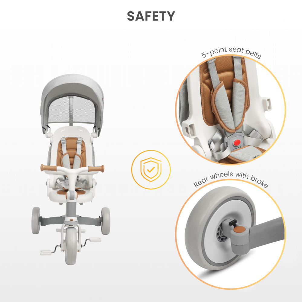 Cei mai mici copii il pot folosi ca o tricicleta clasica impinsa de parinti. Datorita manerului conectat la rotile din fata, parintii pot controla complet tricicleta.