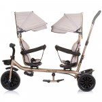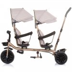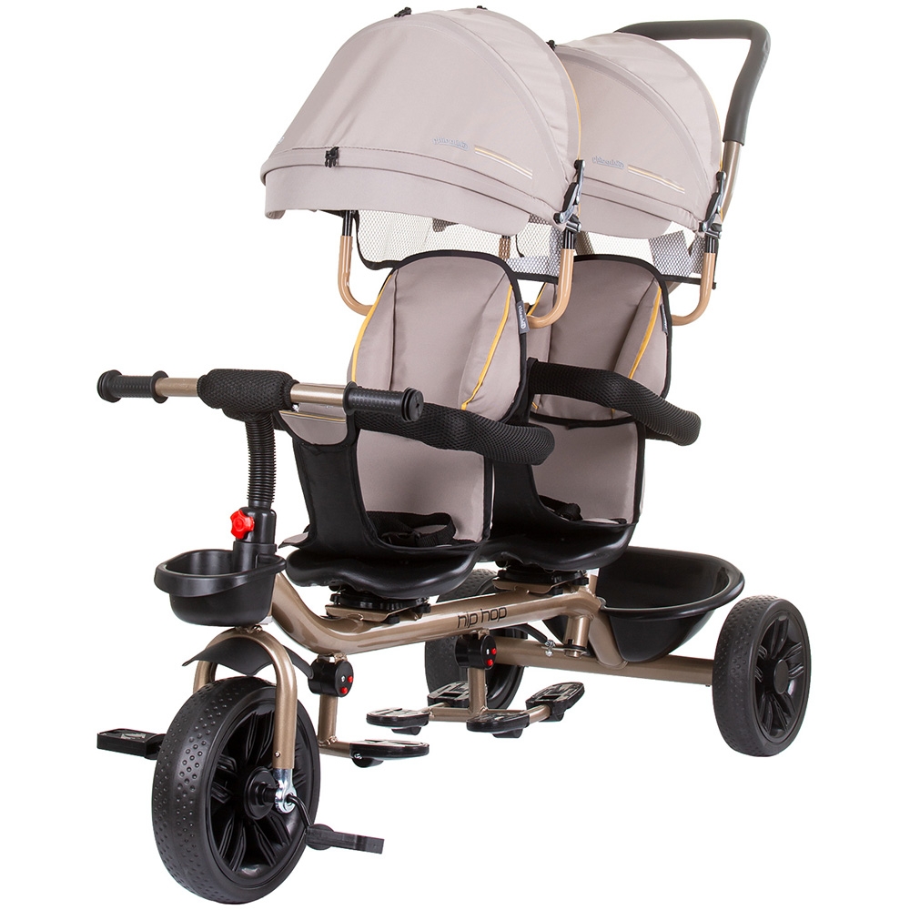 Tricicleta pentru gemeni Chipolino Hip Hop Sand cu sezut rotativ 360 grade, suporturi pentru picioare, bara de protectie, cosulete