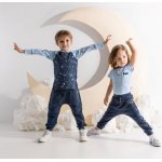 Tricou cu maneca lunga de bumbac albastru cu blumarin.