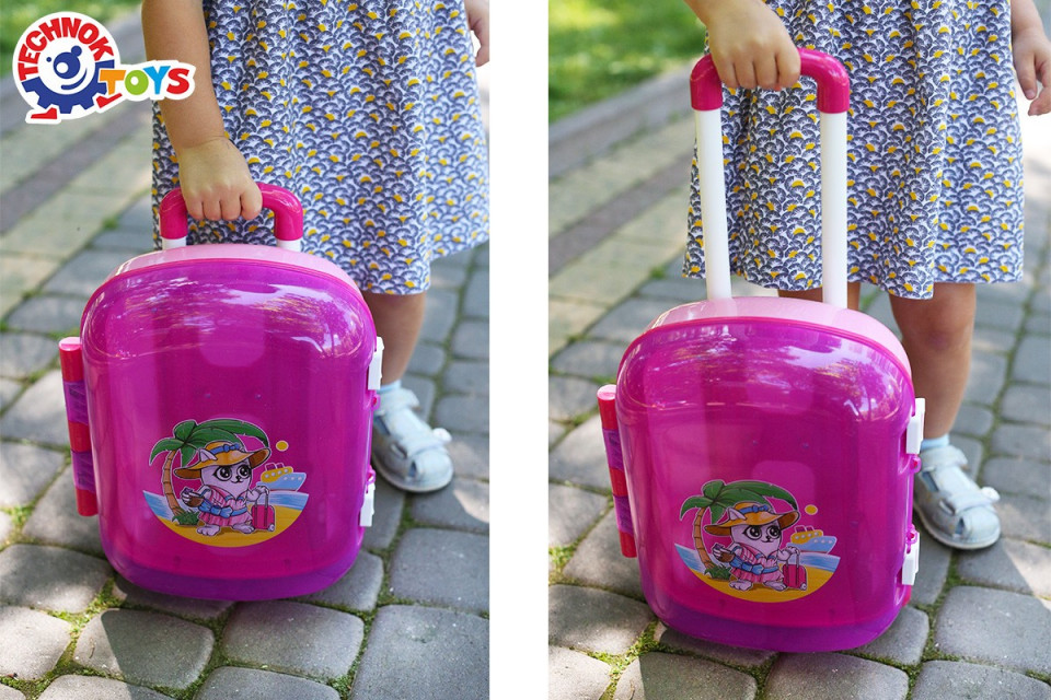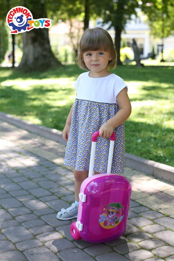 • Este interesantă, funcțională și foarte asemănătoare cu o valiză reală pentru adulți.