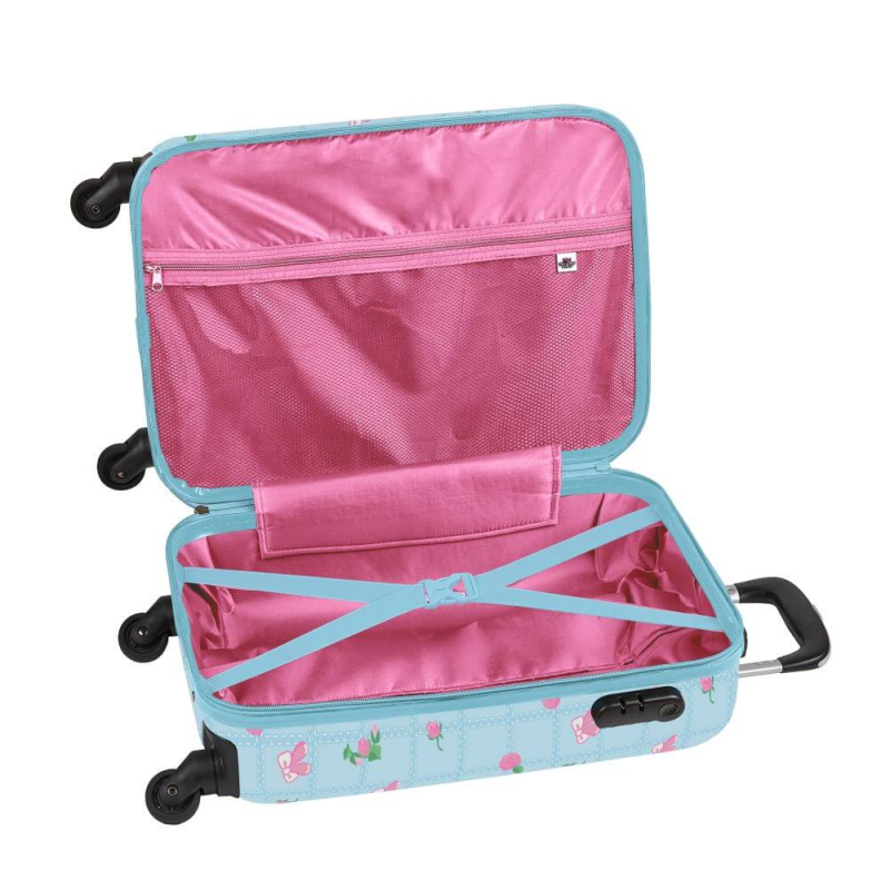 Troler voiaj Na! Na! Na! Surprise 51 cm, ideal pentru plecarea in calatorie a fetitelor. Din plastic dur, preformat, bleu si imprimat cu frumoasele papusi Na! Na! Na! Surprise si multe buchete de floricele, plecarea in calatorii devine o adevarata placere.