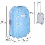 * O simpatica valiza albastra, dotata cu roti, este partenerul perfect pentru orice aventura!