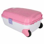* O simpatica valiza roz, dotata cu roti, este partenerul perfect pentru orice aventura!