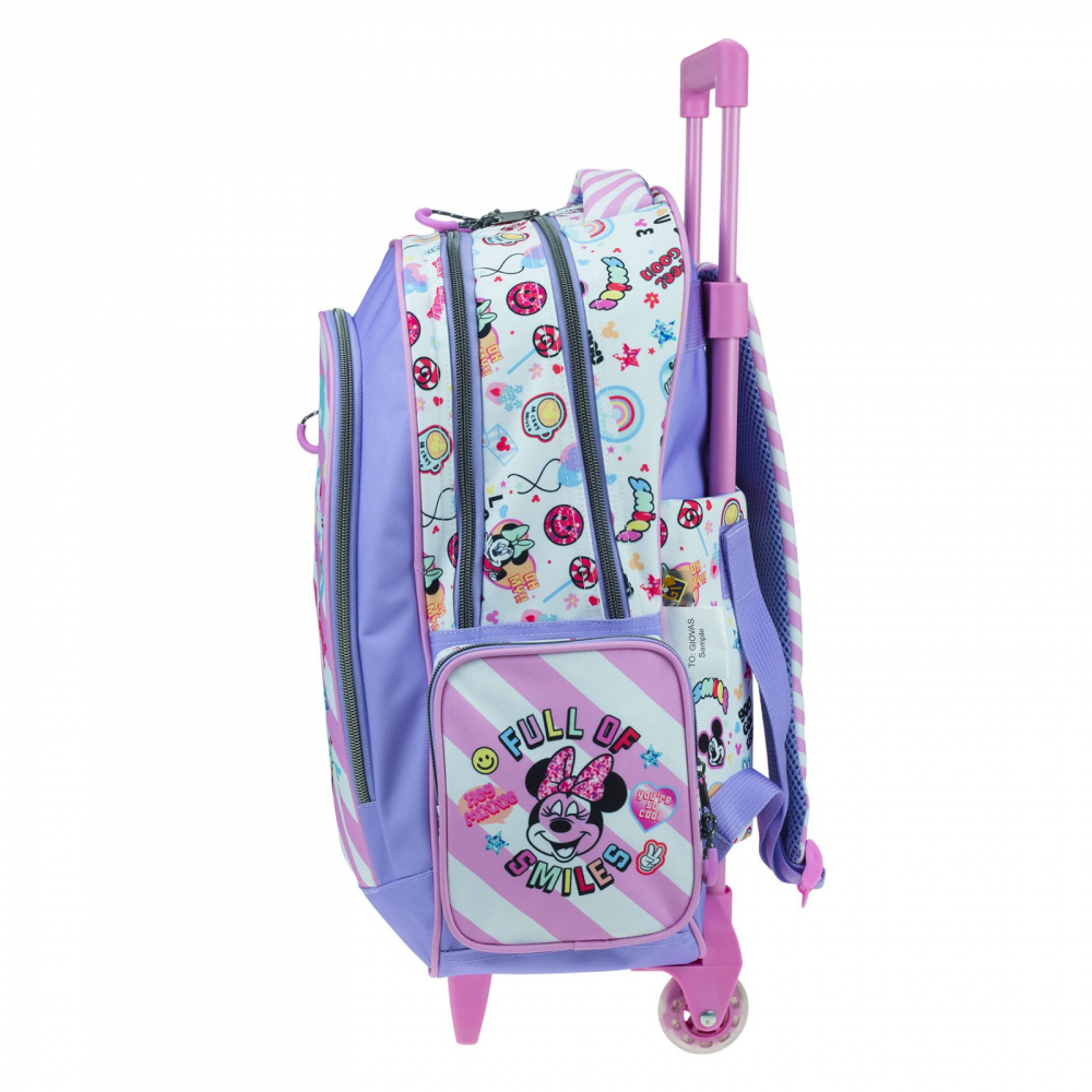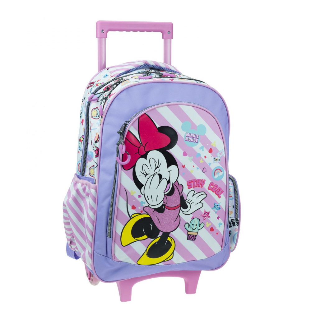 Trollerul școlar Minnie Stay Cool este partenerul perfect pentru micii aventurieri, combinând un design vesel și șic cu funcționalitatea necesară pentru zilele de școală, excursii și activități în mișcare. Gândit pentru confort și organizare, acest troller le face pe toate mai ușor și mai plăcute.