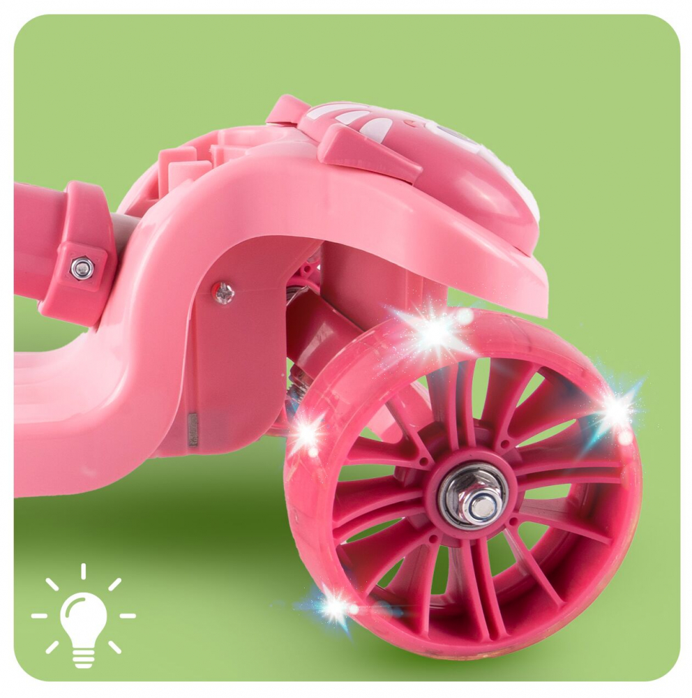 Trotineta 2 in 1, pliabila, cu scaun, roti luminoase LED, ghidon reglabil si platforma antiderapanta, Pink Kitty
