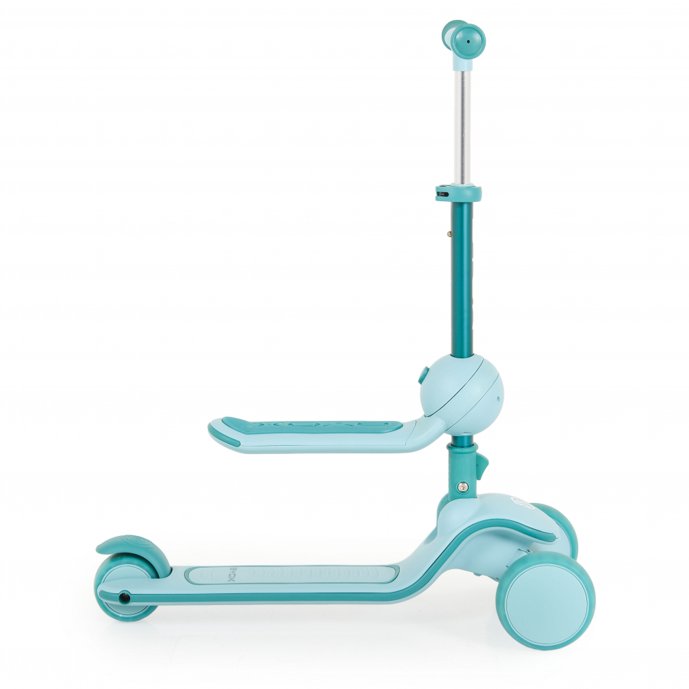 Trotineta 2in1 pentru copii Byox Evo Mint de la 18 luni, cu scaunel pliabil, roti ABEC-5 din PU cu lumini LED, Ghidon cu inaltime reglabila 63-75 cm si frana spate