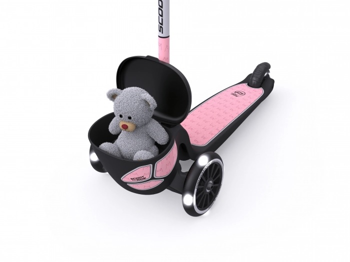 Trotineta copii pliabila cu roti luminoase, suport jucarie, Highwaykick 2 Lifestyle Rose Reflectorizant, 2 ani +, pana la 50 kg, Scoot & Ride