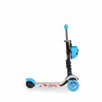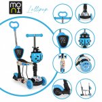 Trotineta evolutiva Scooter 3in1 cu maner parental,viraj intuitiv,inaltime ghidon reglabila pe 3 nivele,baza antiderapanta,scaunel cu spatar,roti PU cu lumini si cosulet Moni Lollipop Blue