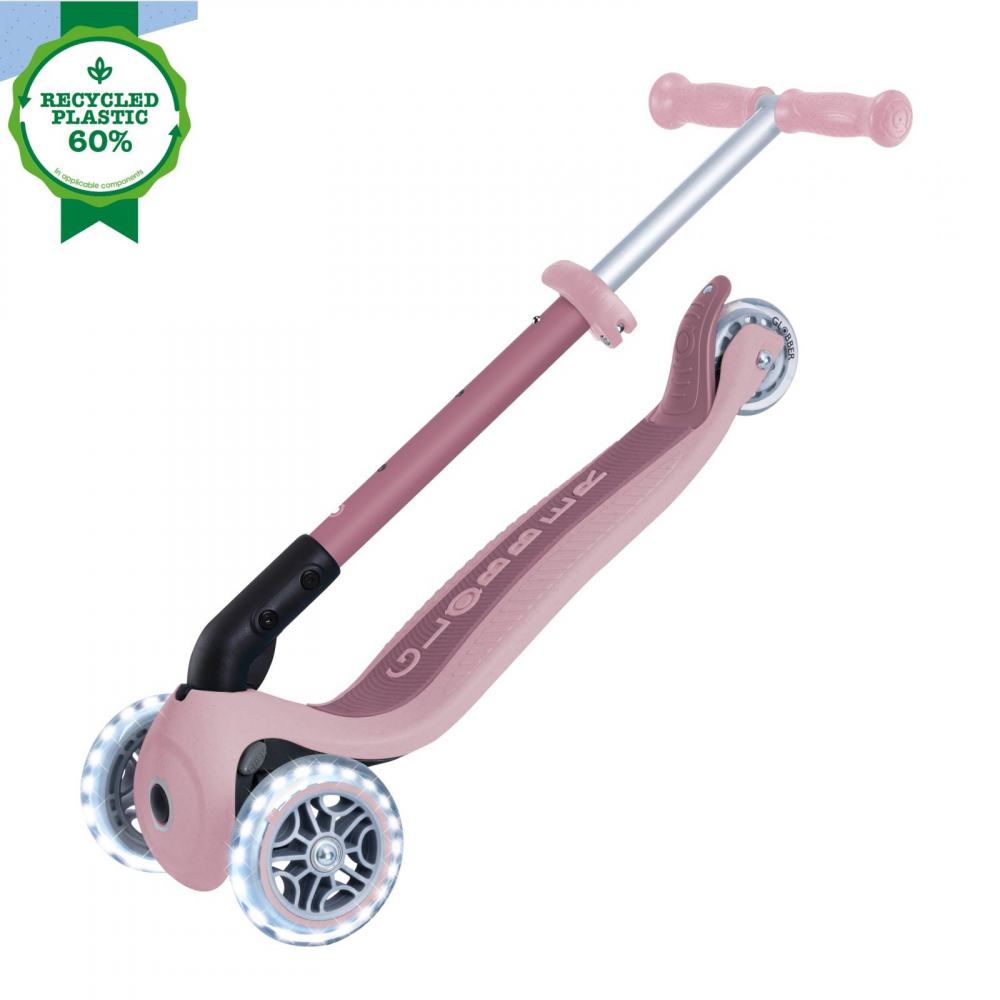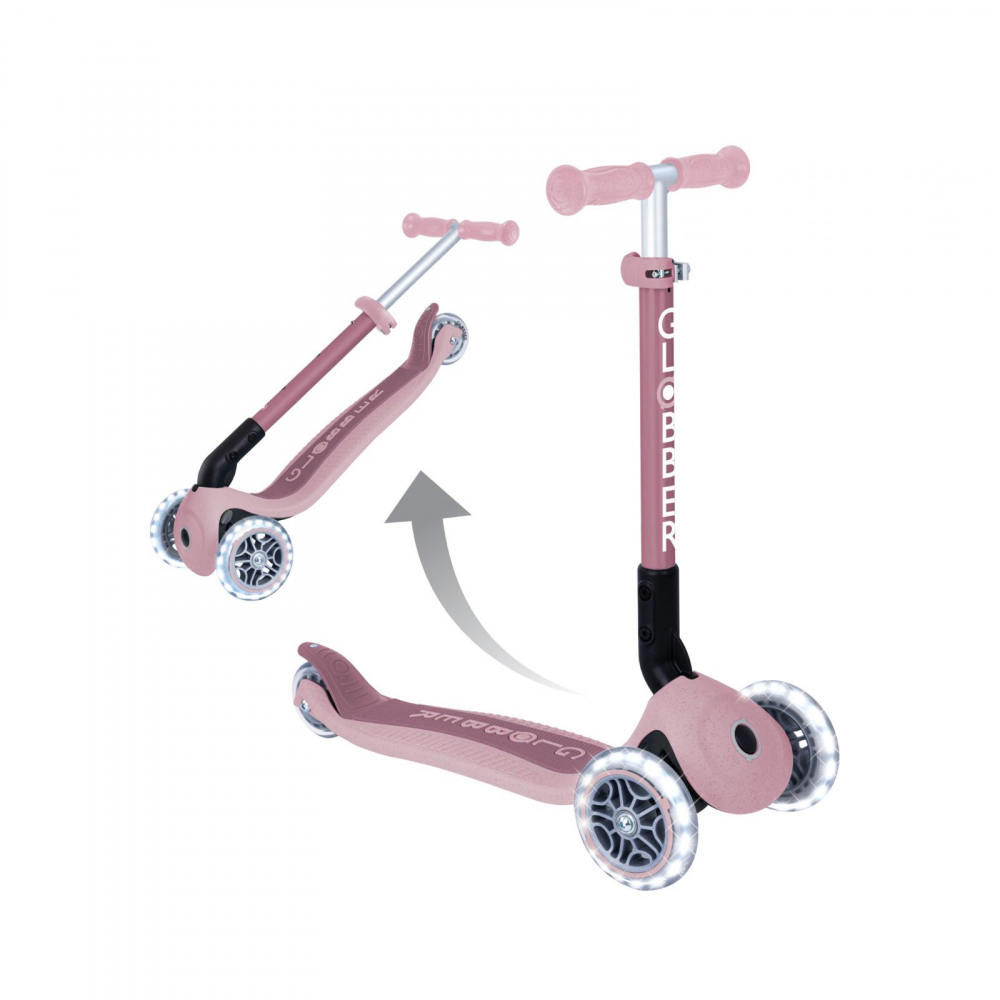 Trotineta Globber Junior ECO Mov Liliac, pliabila, ghidon din aluminiu reglabil, roti cu Led, greutate admisa 50 kg