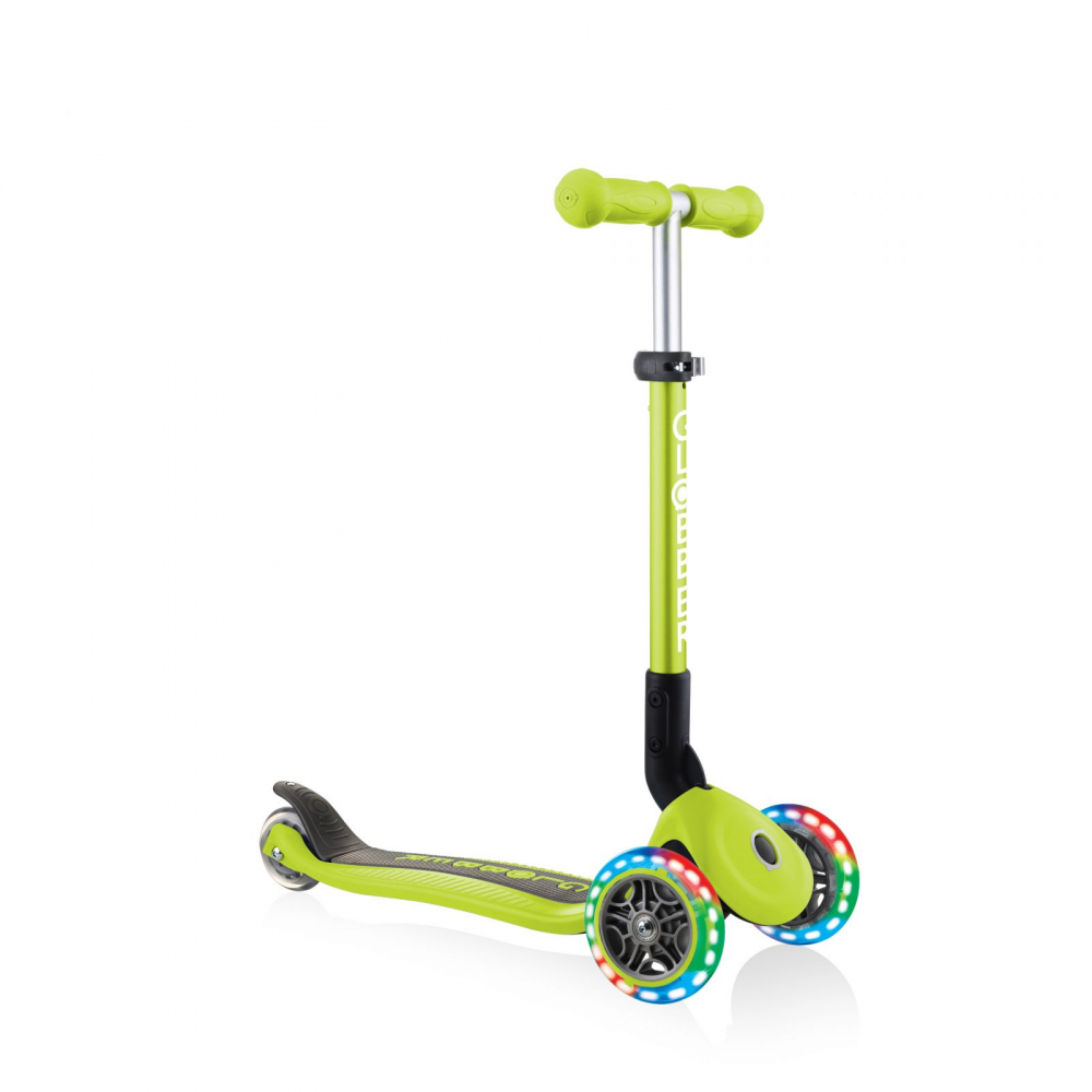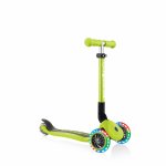 Trotineta Globber Junior verde cu 3 roti LED, pliabila, ghidon reglabil, platforma antiderapanta, greutate suportata 50 kg, varsta 2 ani+