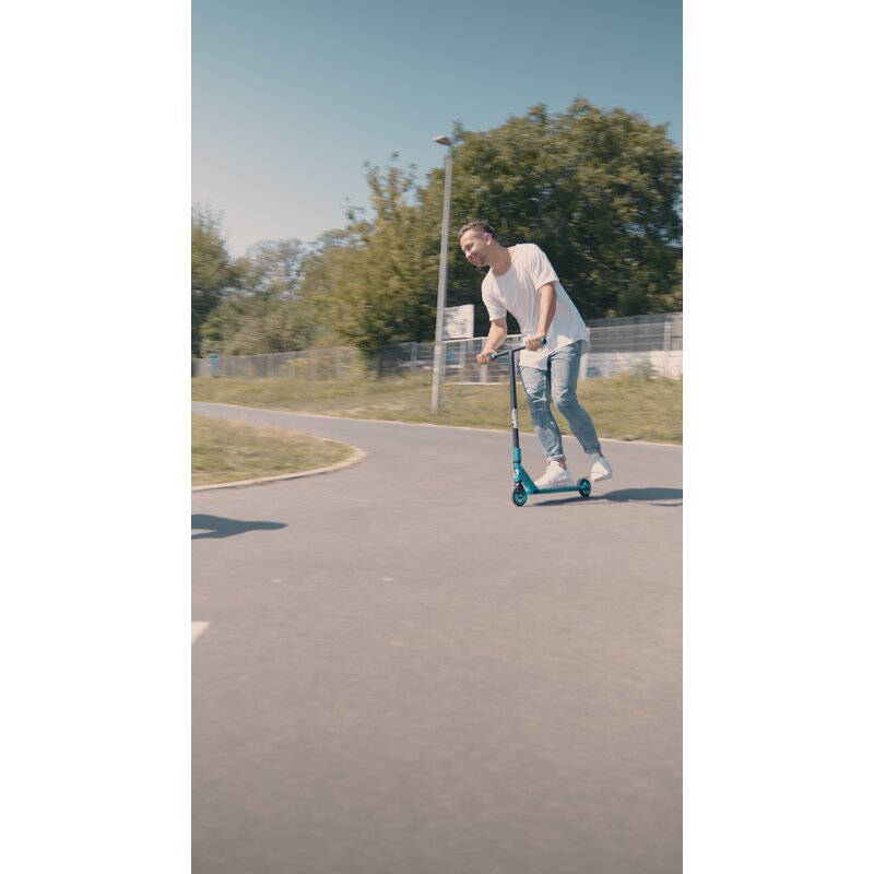 Puntea usoara se ridica cu usurinta de pe sol, ceea ce face trotineta excelenta pentru a efectua trucuri. Suprafata anti-alunecare asigura un nivel ridicat de siguranta.