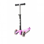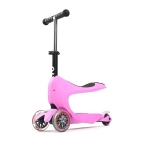 Trotineta Micro Mini2go Deluxe Pink cu 3 roti, scaunel, spatiu depozitare, ghidon telescopic, roti din silicon, greutate admisa 50 kg