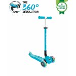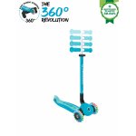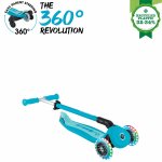 GO•UP ACTIVE LIGHTS 360 este echipat sistem patentat de control parental la 360, în modul ride-on, un design 100% fără unelte, un sistem patentat de pliere și blocare a direcției, un scaun și un T-bar ajustabil, un deck durabil și roți care se luminează cu LED fără baterii.