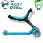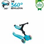 GO•UP ACTIVE LIGHTS 360 este pliabila, cu 3 roți care luminează, cu scaun pentru copii, care se transformă în bicicleta ride-on, și trotineta pentru copii mici. Modurile ride-on si bicicleta de mers sunt concepute pentru copiii mici cu vârste între 15-36 luni, iar modul de trotineta este recomandat pentru copiii cu vârste între 3-9+ ani.