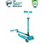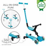 Trotineta pentru copii Globber Go-Up Active Eco Blue 3 in 1, rotire 360, ghidon reglabil, scaun, maner parinte, roti cu Led, greutate admisa 50 kg
