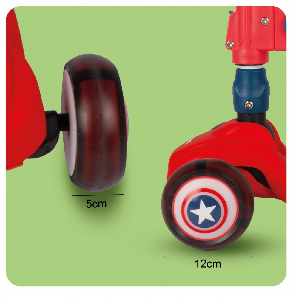 Rotile cu LED-uri integrate dau trotinetei un aspect unic. Luminile se aprind in timpul miscarii, ceea ce nu numai ca ii bucura pe copii, dar le si sporeste vizibilitatea pe drum sau pe trotuar. Astfel, joaca devine mai sigura si mai palpitanta!