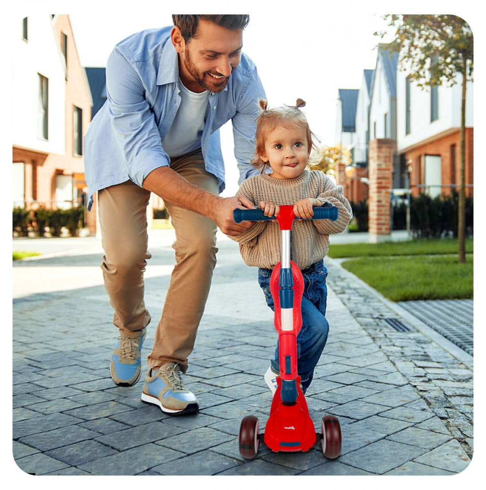 O trotineta cu trei roti ofera multa distractie in aer liber! Copilul tau se poate bucura de o plimbare sau poate merge cu trotineta, dezvoltandu-si in acelasi timp coordonarea motorie si echilibrul. Rotile LED stralucitoare si designul atractiv ii incurajeaza sa petreaca timp activ la plimbari sau la locul de joaca. Ideala pentru copii de la 2 ani.