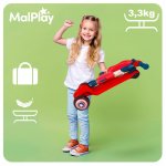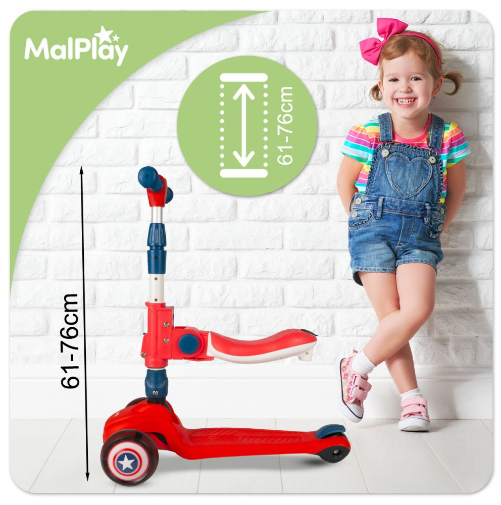 Trotineta pentru copii, Malplay, pliabila, 2 in 1, scaunel detasabil, roti din PU cu lumini Led, punte antiderapanta si frana de picior, ghidon reglabil pe inaltime, manere ergonomice, 56 x 28 x 66 cm, Red