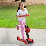 Trotineta pentru copii, Malplay, pliabila, scaunel detasabil, roti PU cu Led, punte antiderapanta si frana de picior, cu scaunel si ghidon reglabil pe inaltime, manere ergonomice, cosulet incorporat, Red LadyBug