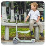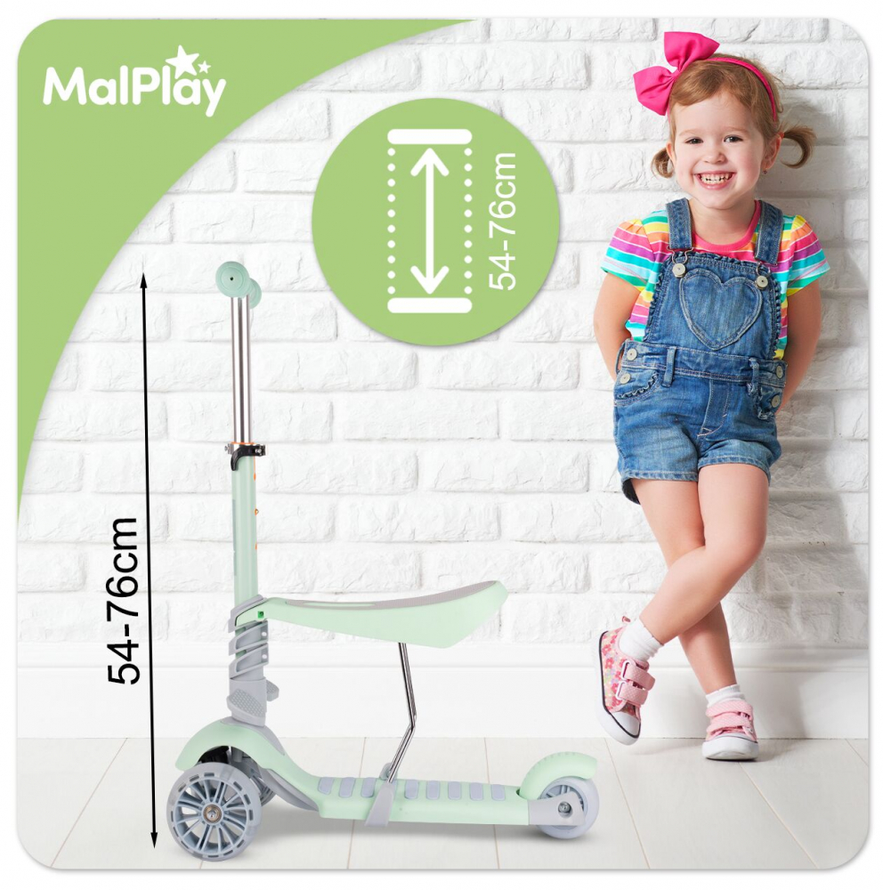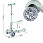 Trotineta pentru copii, Malplay, pliabila, scaunel detasabil, roti PU cu Led, punte antiderapanta si frana de picior, cu scaunel si ghidon reglabil pe inaltime, manere ergonomice, Mint