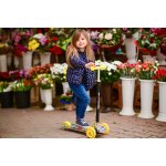 Trotinetă ușoară pentru copii SCOOTER YUPPEE are 3 roți pentru o stabilitate mai bună, care sunt echipate cu leduri ce se colorează în diferite culori când se merge pe ea. Mersul pe trotinetă ajută copiii să-și dezvolte abilitățile motorii, să-și coordoneze mișcările și să-și mențină echilibrul. Datorită celor două roți din față, care au o lărgime mai mare decât restul trotinetei, este mai ușor pentru copil să mențină echilibrul decât pe o trotinetă obișnuită, cu o singură roată în față.