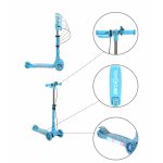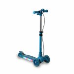 Trotineta pliabila cu inaltime reglabila,baza antiderapanta cu lumini LED,roti cu lumini LED,frana de mana,de la 3 ani si pana la 50 kg,muzica,far si clopotel Byox Toy Cube Blue