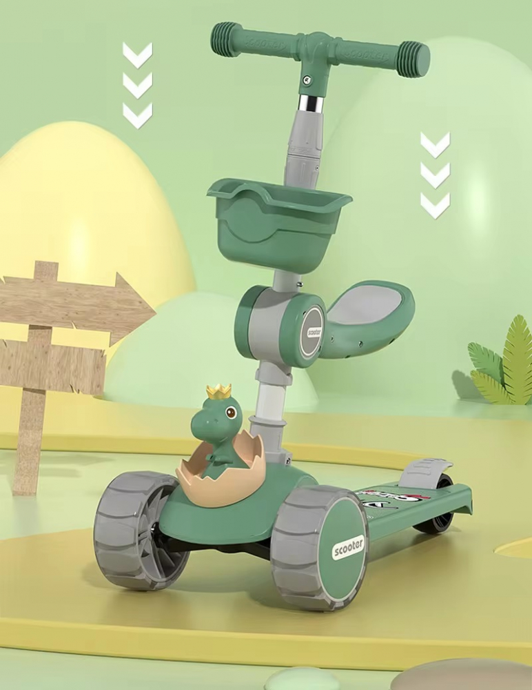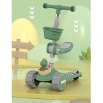 Trotineta pliabila pentru copii, Nichiduta, cu ghidon reglabil in inaltime, cosulet si scaunel detasabile, muzica, roti luminoase LED, frana pe roata din spate, dimensiune 56 x 24 x 72 cm, Green Dino