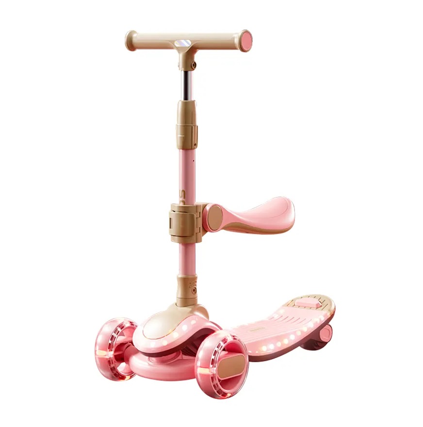 Trotineta pliabila pentru copii Nichiduta, cu muzica si roti luminoase din PU, scaunel detasabil, ghidon ajustabil, placa antiderapanta, frana pe roata din spate, 90 x 32 x 65 cm, Pink