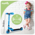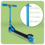 * Are trei nivele de reglare (72 cm, 77 cm, 82 cm) care permit utilizarea confortabila si ergonomica a scuterului de catre copii de diferite varste si inaltimi.