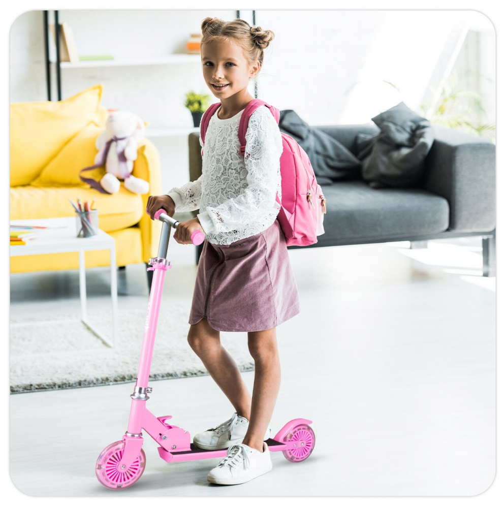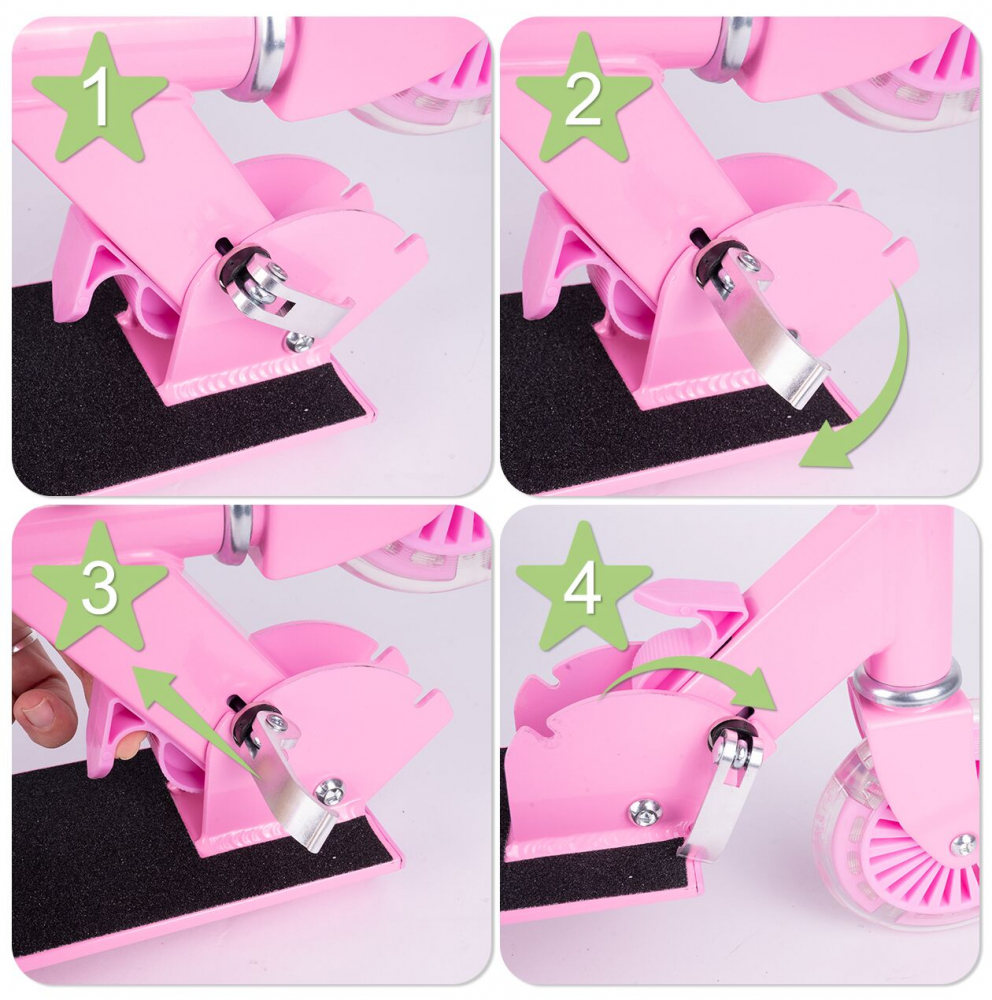 Trotineta pliabila si reglabila cu lumini LED Pink